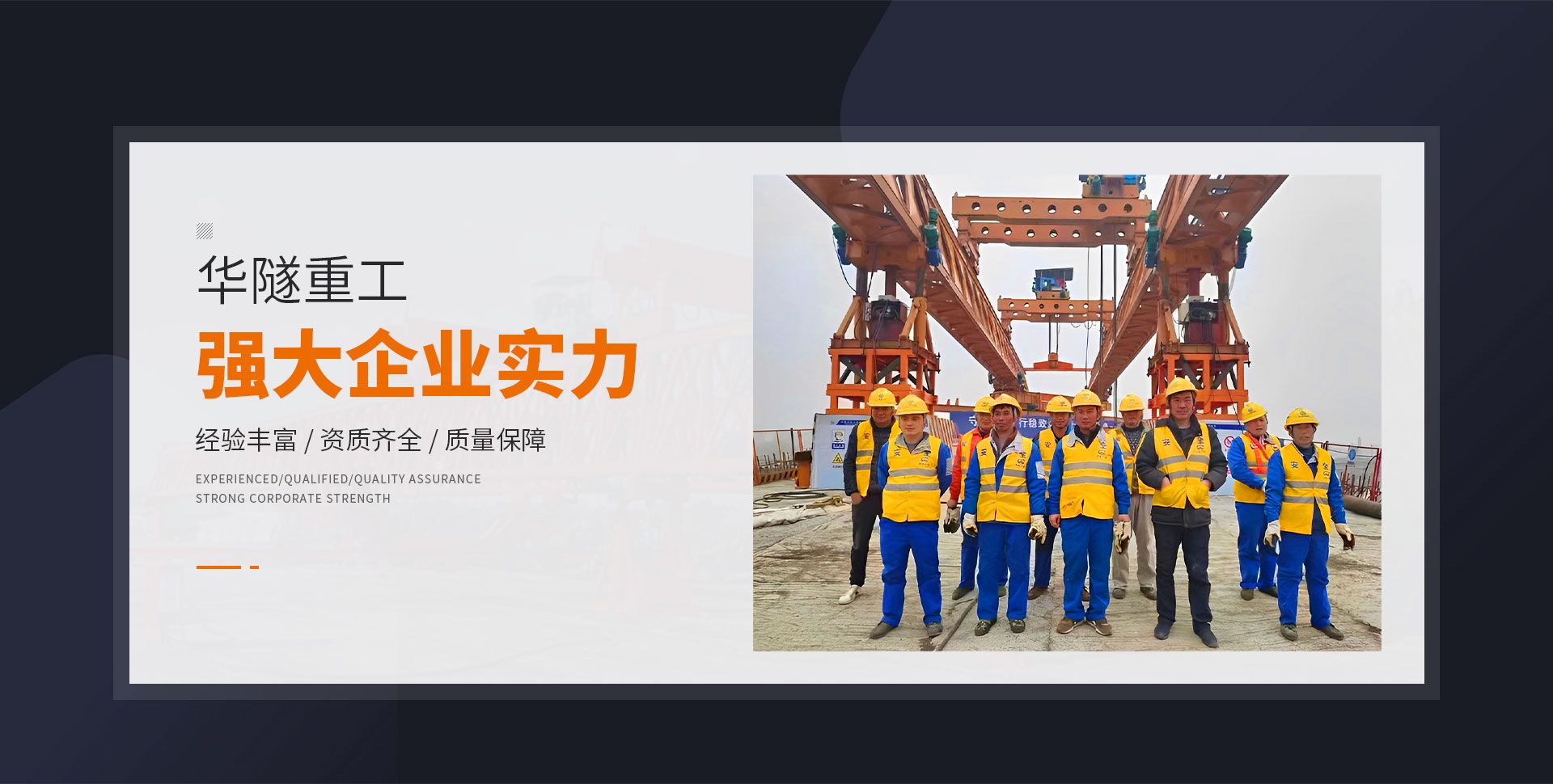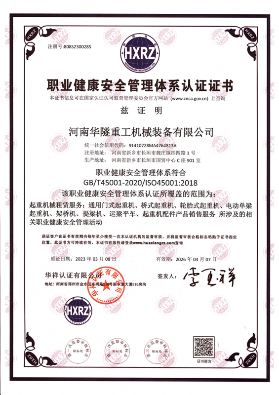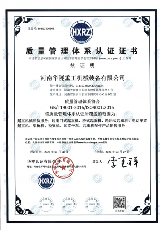 河南華隧重工機械裝備有限公司主要從事通用門式起重機、橋式起重機、電動單梁起重機,輪胎式起重機、架橋機、提梁機、遠(yuǎn)梁平車、鋼絲繩電動萌蘆、卷揚機、起重配件制造、銷售:起重機械租賃、安裝和維修,起重設(shè)備園收,機械設(shè)備維修,鋼結(jié)構(gòu)工程承包,橋梁工程及技術(shù)咨淘服務(wù),銷售五金制品、機電設(shè)備:建設(shè)工程監(jiān)理,建設(shè)工程設(shè)計,各類工程建設(shè)活動,建筑勞務(wù)分包,建筑物折除作業(yè),施工作業(yè),工程管理服務(wù),土石方工程施工,裝如發(fā)運。  公司已通過IS0國際質(zhì)量、環(huán)境、健康與安全三合一標(biāo)準(zhǔn)認(rèn)證,特種設(shè)備制造許可證和特種設(shè)備安裝改造維修許可證。擁有完熟的質(zhì)量管理體系。嚴(yán)格的管理制度,強大的生產(chǎn)能力和先進(jìn)的檢測手段,在保證產(chǎn)品質(zhì)量的同時,也具備了極強的市場競爭力。  公司堅持科技創(chuàng)新為理念,產(chǎn)品質(zhì)量為核心,注重信譽,建立了減信可靠、快捷、思速。便利周到的售后服務(wù)網(wǎng)絡(luò)。  我們擁有的技術(shù)專家和技術(shù)服務(wù)隊伍為客戶提供充善的售前技術(shù)支持和全天候的售后服務(wù)體系,讓您無后顧之憂,享受一站式的超值服務(wù)。  “華隧重工,伴您成功“是華隧重工永遠(yuǎn)的宗指,真被的希望與各界朋友攜手并進(jìn)。共創(chuàng)輝準(zhǔn)!